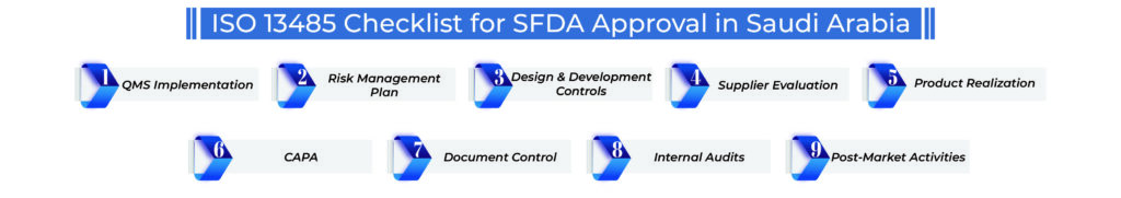 The SFDA integrates ISO 13485 requirements into its regulatory approval process to: